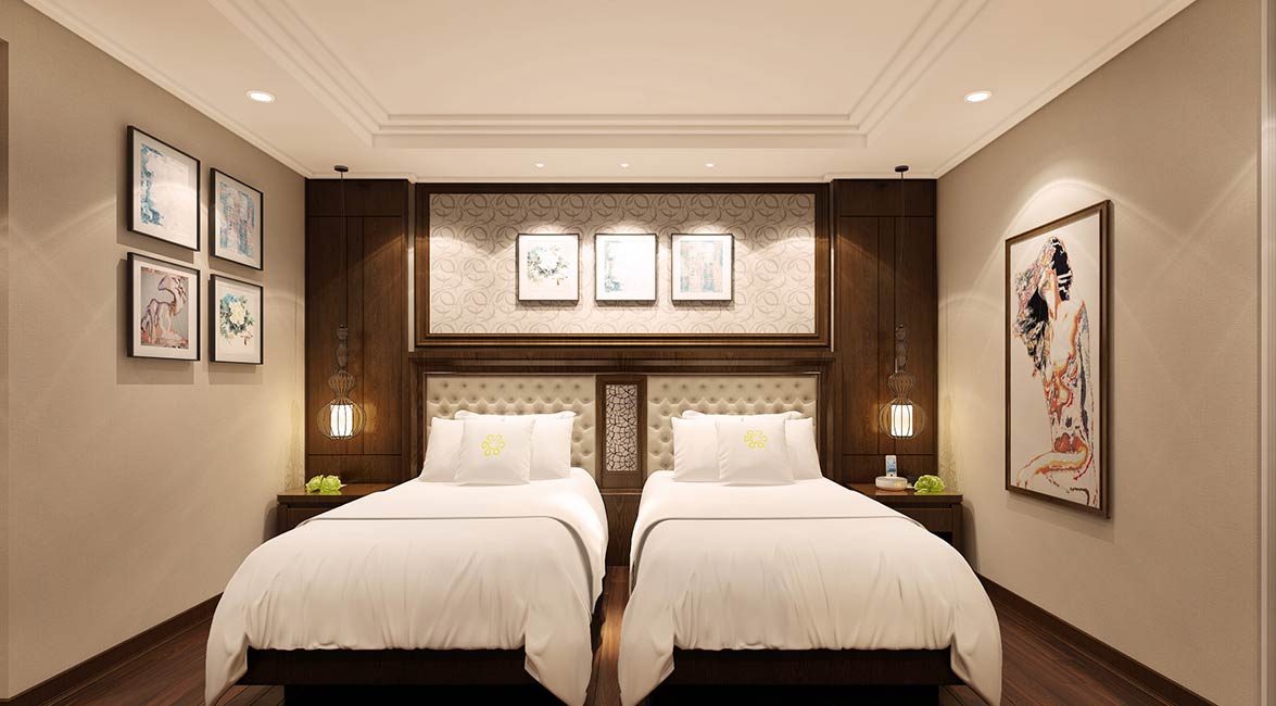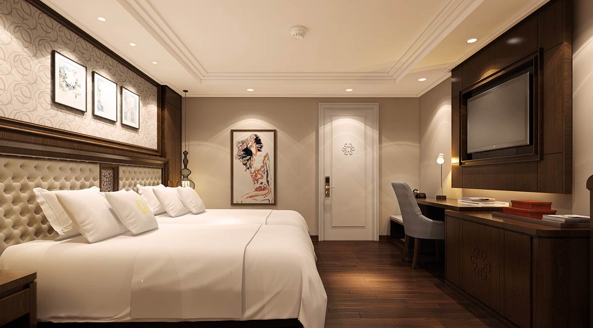 Camia Hotel boasts 10 Deluxe City View which offer a relaxing and elegant touch of the Neo-Classical Style. Each room in Camia Hotel is a combination of beauty, aesthetics and art. Deluxe City View are arranged in a reasonable area of 30 m2 and fully equipped with modern facilities such as king-sized beds, LCD cable television, airconditioner, ensuite bedroom featuring standing hot and cold showwer and modern toiletries. The room has wide windows opening to the lovely landscape of Ha Noi. Deluxe is your smart choice for budget travellers because of its convenience and reasonable price. Connecting rooms are also availble for groups and families.